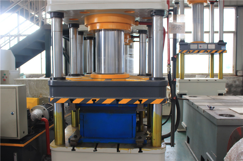 200噸不銹鋼鍋蓋拉伸成型油壓機它的顯著特點是工作空間寬敞,整機結構簡單,工藝性較好。機身由上橫梁,活動橫梁,工作臺和四根立柱組成,工作缸安裝在上橫梁內,活動橫梁與工作缸的活塞聯接成一整體,以立柱為導向做上下運動,并傳遞工作缸的內產生力量,對制件進行壓力加工