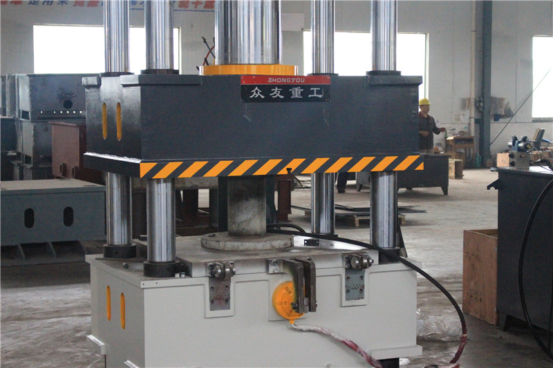 500噸多功能三梁四柱油壓機是山東滕州眾友重工機械設備有限公司自主研發生產設計的,設備由主機及控制機構兩大部分組成,通過管路及電氣裝置聯系起來構成整體。主機部分包括機身、主缸、限程裝置等。控制機構包括液壓泵站(動力系統)、電器箱、移動操縱臺等組成
