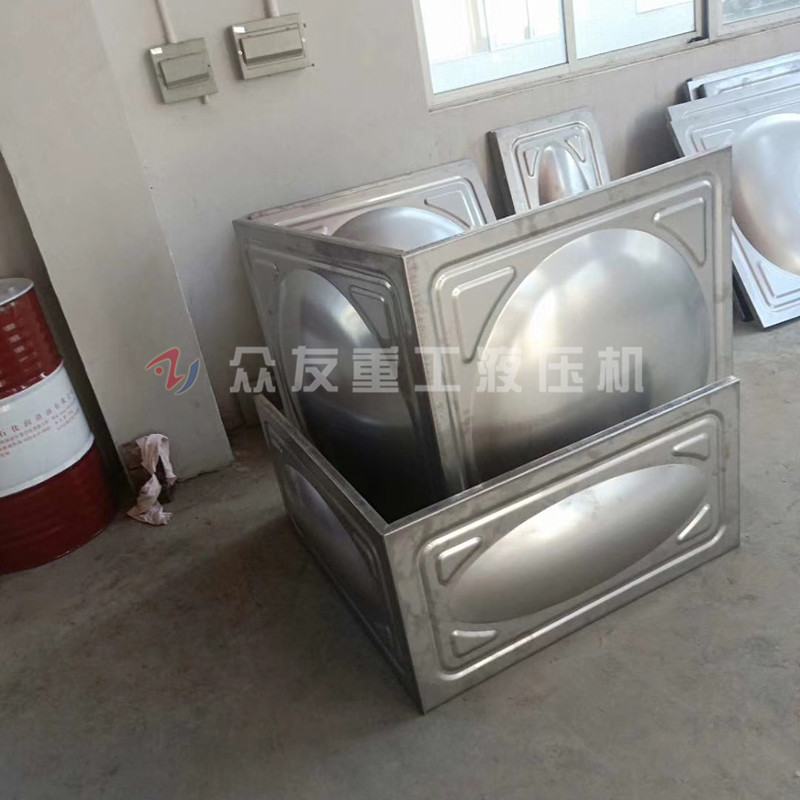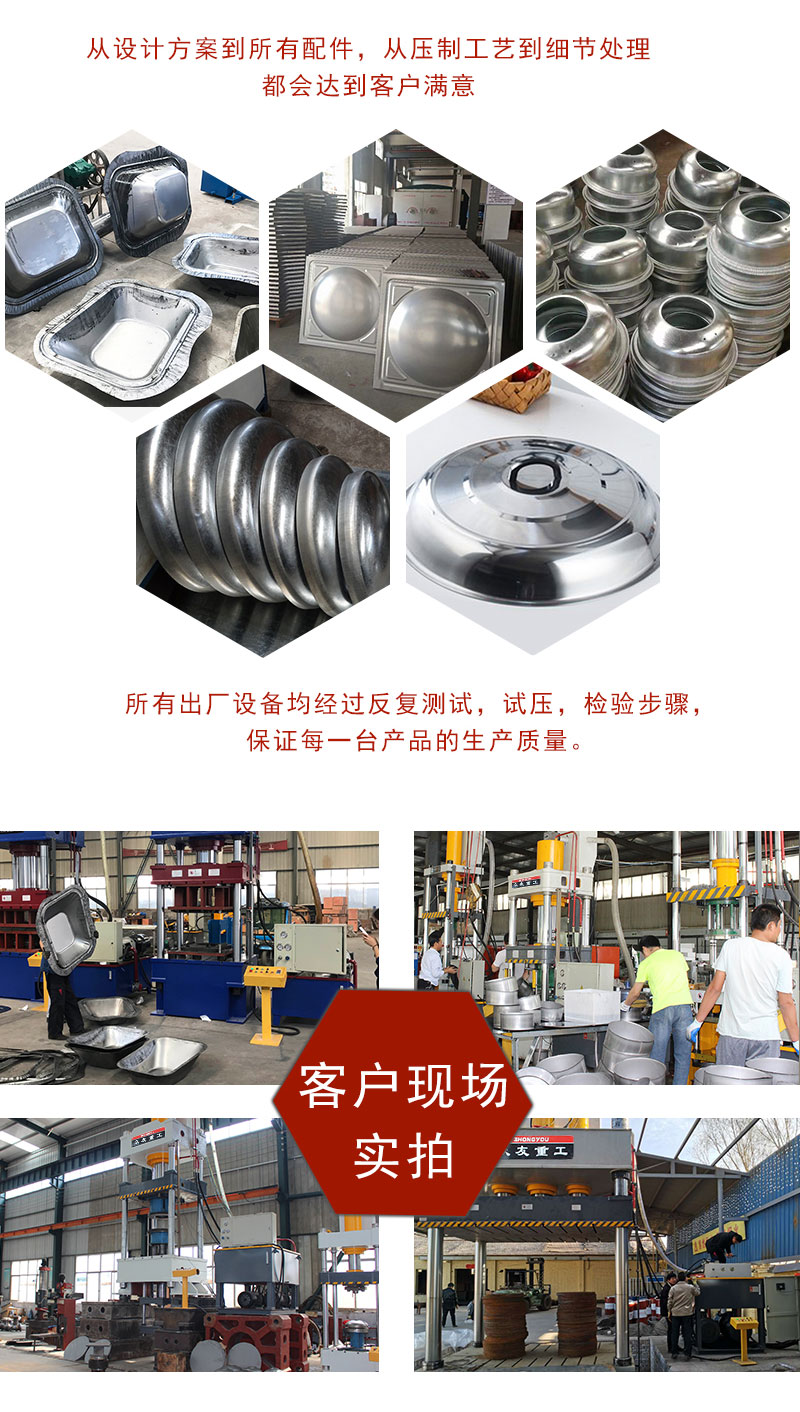 500噸四柱雙缸油壓機是山東滕州眾友重工機械設備有限公司自主研發生產設計的,不銹鋼水箱蓋板采用不銹鋼經沖壓,折邊,成型等工藝加工而成,無焊接工藝(因焊接處材料組織發生變化易生銹)。其中沖壓工藝,就是使用500噸不銹鋼水箱蓋板拉伸成型油壓機加工成型,沖壓工藝是一種金屬加工方法,它是建立在金屬塑性變形的基礎上,利用模具和630T三梁四柱金屬拉伸及對板料施加壓力,使板料產生塑性變形或分離,從而獲得具有一定形狀、尺寸和性能的零件(沖壓件)