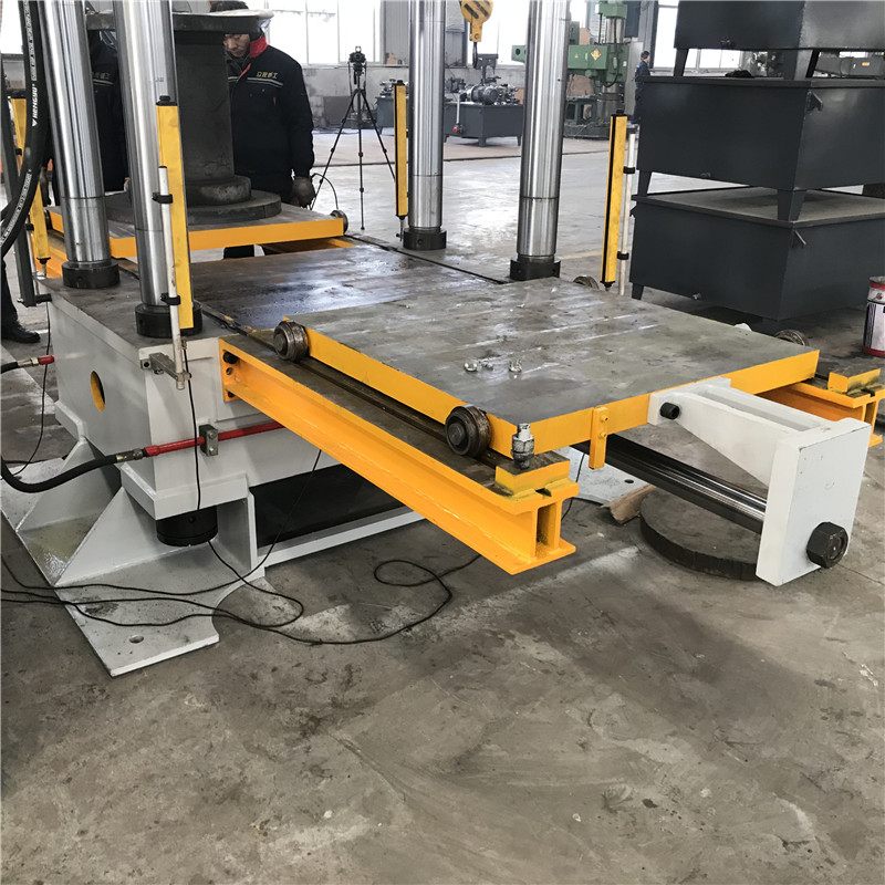 400噸雙移動工作臺油壓機可以更好滿足大型工件加工工藝的要求,降低勞動強度,方便上下提升工件,提高工作效率。同時為滿足工件自重問題,移動工作臺采用大軸承設計,運行穩定、牢靠。載重能力可根據工作臺做調整