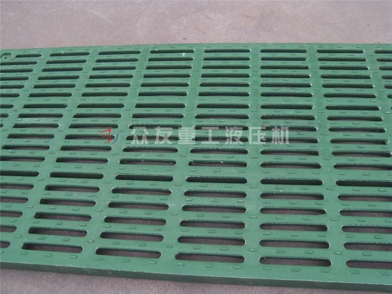 漏糞板采用BMC復合材料,高壓壓制成型,內部添加雙層加粗鍘筋網,承重能力強。新型復合漏糞板采用原生料制作,原材料有:環保型樹脂,碳酸鈣粉,苯乙烯,玻璃纖維攪拌均勻后,使用大臺面315噸漏糞板成型油壓機經145度高溫模壓一次成型,復合漏糞板采用背面雙承重結構,加的有雙層鋼筋,抗摔耐用。承重力度高,加重不加價