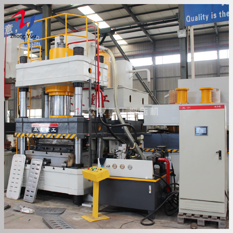 3、開動四柱油壓機設(shè)備進行試壓,檢查壓力是否達到標準的工作壓力,液壓機的動作是否正常可靠,有沒有泄漏的情況。